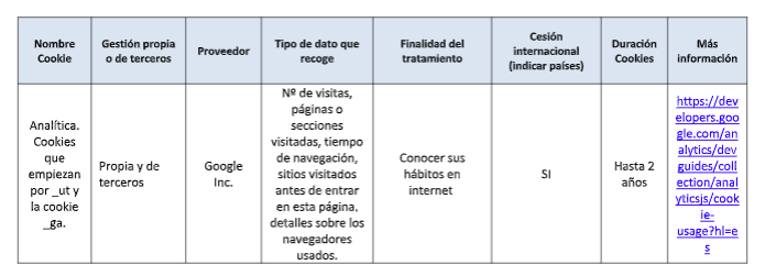 cumplir con las finalidades para las cuales se ha indicado en cada cookie. Por todo lo
